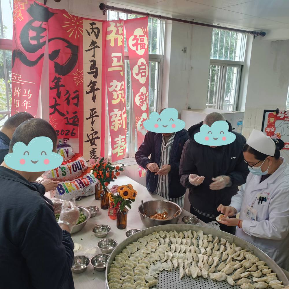 精神五科、中医神志科与外科的活动室里,暖意融融、香气四溢。医护人员与患者一起制作、品尝饺子、汤圆等节日美食,将节日的仪式感拉满。