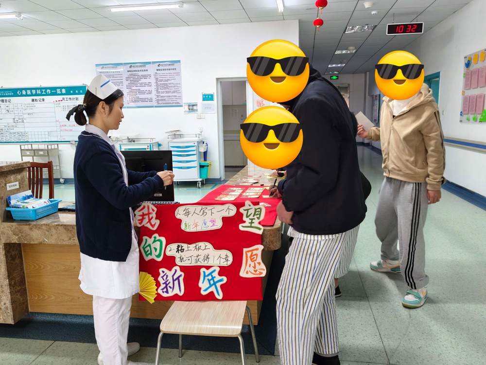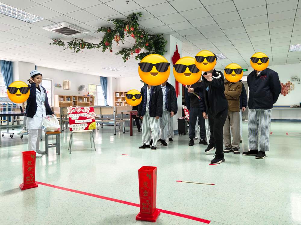 精神六科的猜灯谜活动和心身医学科的游园活动热闹非凡。灯谜活动现场挂满五颜六色的灯谜纸条,患者们或独自沉思,或结伴讨论,不时有人兴奋地报出谜底,答对者收获的小礼品更是让大家喜笑颜开;主题游园活动由心理治疗师特别打造,“公鸡下蛋”、“原地踏步”、“投壶游戏”等趣味环节轮番上演,现场欢呼喝彩不断。