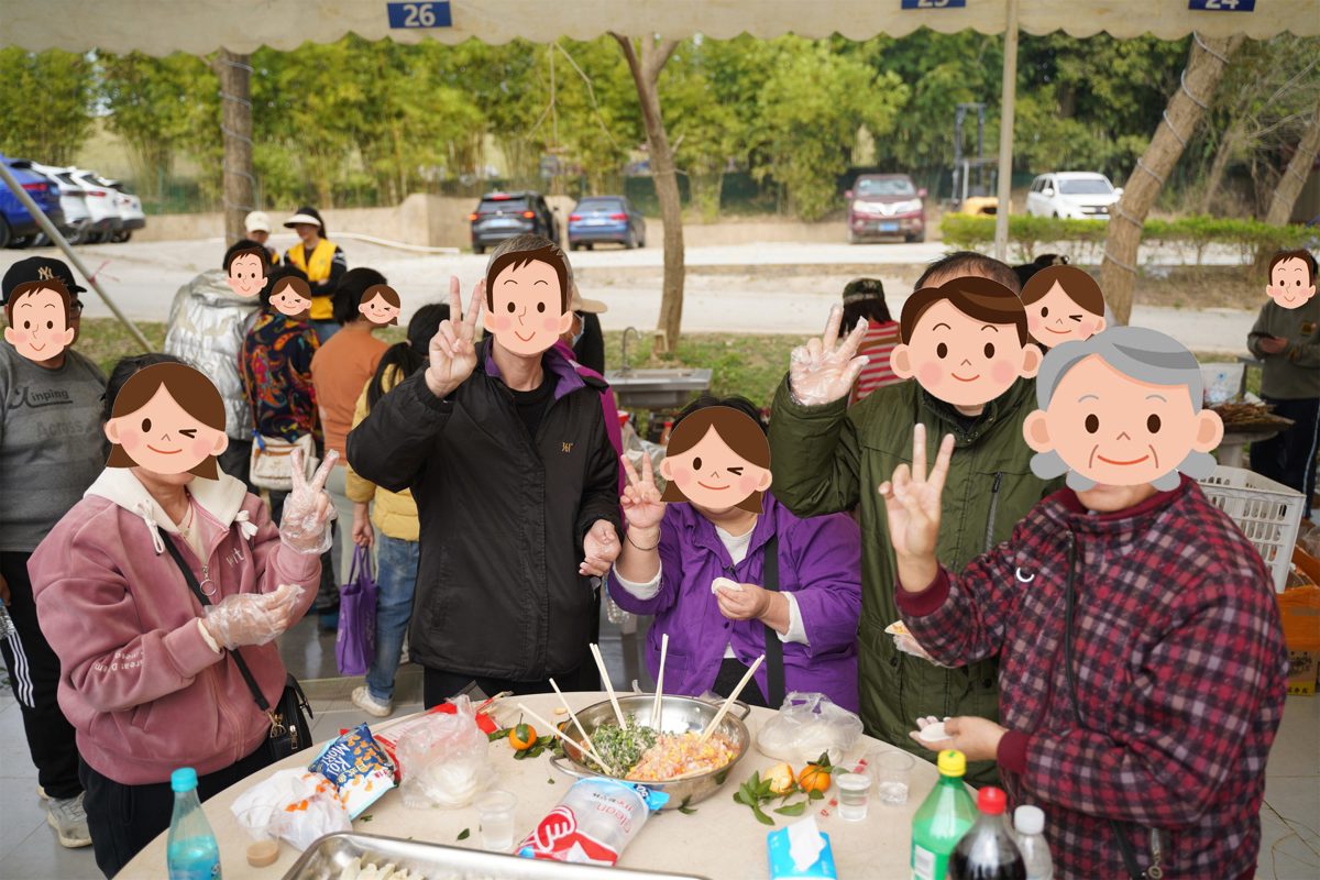 竞技的热情过后,美食共享环节让温暖持续蔓延。烧烤架上的香气与饺子馆的热气渐渐升腾,福友们围坐在食材旁动手实践:有人跟着社工学习擀皮包馅,动作虽笨拙却格外认真;有人主动承担起翻动烤串的任务,细心调整火候。家属们在一旁默默搭手,递食材、擦桌面,无声的陪伴里满是支持。当热气腾腾的饺子与香喷喷的烤串端上桌,大家围坐分享,相互夸赞着彼此的手艺,沉浸在轻松融洽的氛围里。