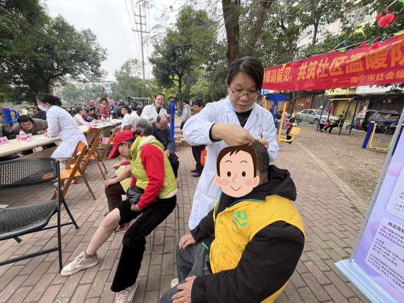 新年新气象,健康暖人心。1月16日,南宁市社会福利医院第三党支部 与第六党支部联合组成医疗志愿服务队,携手金陵镇民政办,到金陵镇及金 陵福康驿站开展中医心理心身同调义诊暨“党建聚力惠民生,健康服务暖基 层”主题党日活动,将优质医疗资源与暖心健康服务送到群众家门口。