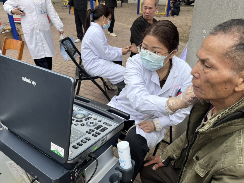 各诊疗区域里,专家们耐心接诊、精准诊疗:内科专家为消化疾病患者 制定个性化治疗与生活方案,外科及疼痛科专家针对腰腿疼痛、关节疾病等 农村常见问题提供专业诊疗建议;影像检查区的免费B超服务备受欢迎,50 岁的陈女士通过B超检查及时发现了甲状腺结节,专家现场给出专业随访建 议。陈女士感激道:“这样的专业检查能下乡来,真是为我们老百姓办了件 大实事。”中医特色诊疗区成为现场亮点,针灸、推拿、艾灸、穴位贴敷等 服务,为肩周炎、腰腿痛等患者缓解病痛,专家还现场教授康复锻炼方法, 助力村民掌握自我保健技能。