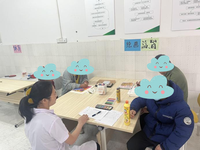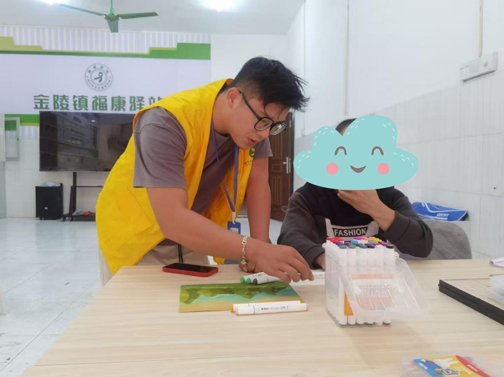 小宁的改变,不止于“走出家门”。当南宁市社会福利医院的心理医生来驿站开展“表达与疗愈”康复活动时,他竟主动报了名——这是他第一次主动寻求专业帮助。医生用绘画引导大家释放情绪,小宁起初安静地看着,眼神却紧紧追着医生的画笔;接过白纸彩铅的瞬间,他没有拒绝,缓缓拿起了笔。