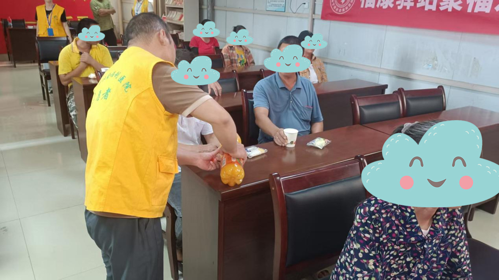 他画了一片雨后的芭蕉林:叶子上挂着水珠,林间有一道浅浅的脚印。“这是谁走过的路呀?”医生轻声问。小宁抿着嘴,沉默了好久,才低声说:“……是我。”这是他第一次在陌生人面前,主动说起“自己”。活动结束时,小宁画了个小小的笑脸,旁边写着歪歪扭扭的字:“谢谢你们,陪我走路。”八个字,道尽了他的心声。如今的他,不仅常来驿站涂色、做健身操,还会留意新来的福友,默默递上一杯水,或是指一指空座位——曾经需要被照亮的他,开始学着温暖别人。